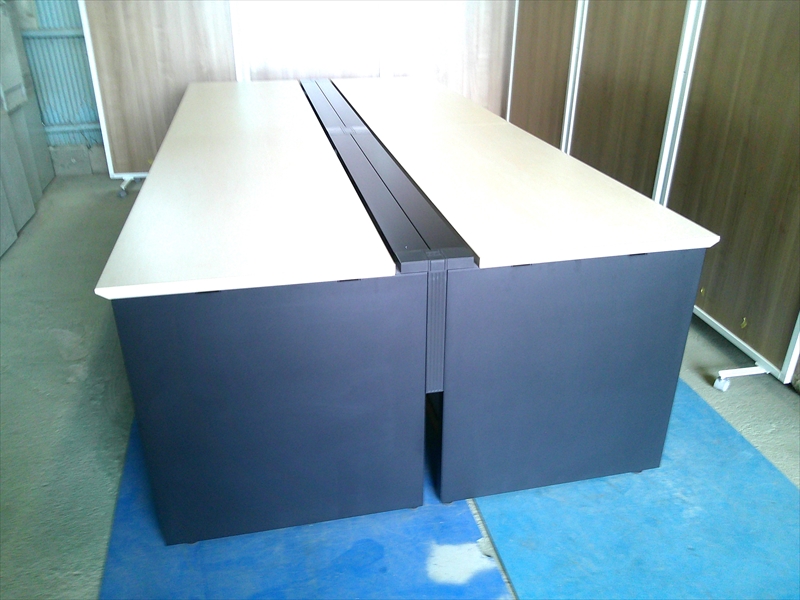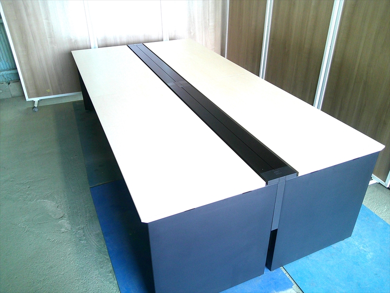 総幅:2800 総奥行:1400 総高さ:720 両面タイプ・開閉式(配線カバー) 天板カラー:M10(ホワイトナチュラル) 脚カラー:E6A(ブラック) 配線カバーカラー:ブラック |