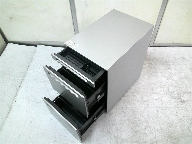 サイズ | W390×D580×H650 引出し内高さ:上段H40mm、中段:H265mm・下段H265mm 本体カラー:Z637(スキップシルバー) |