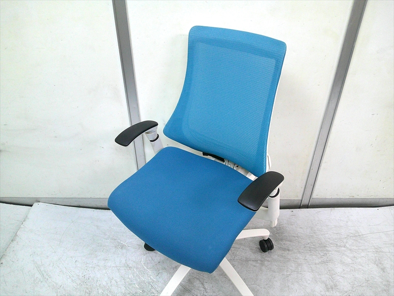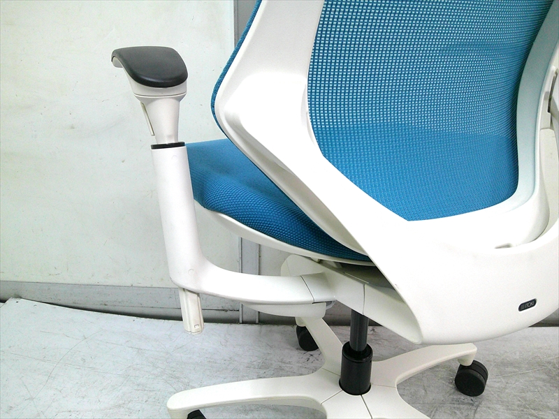 イトーキ エフチェア メッシュバック ストロングブルー ハイバック 可動肘付(旧モデル)