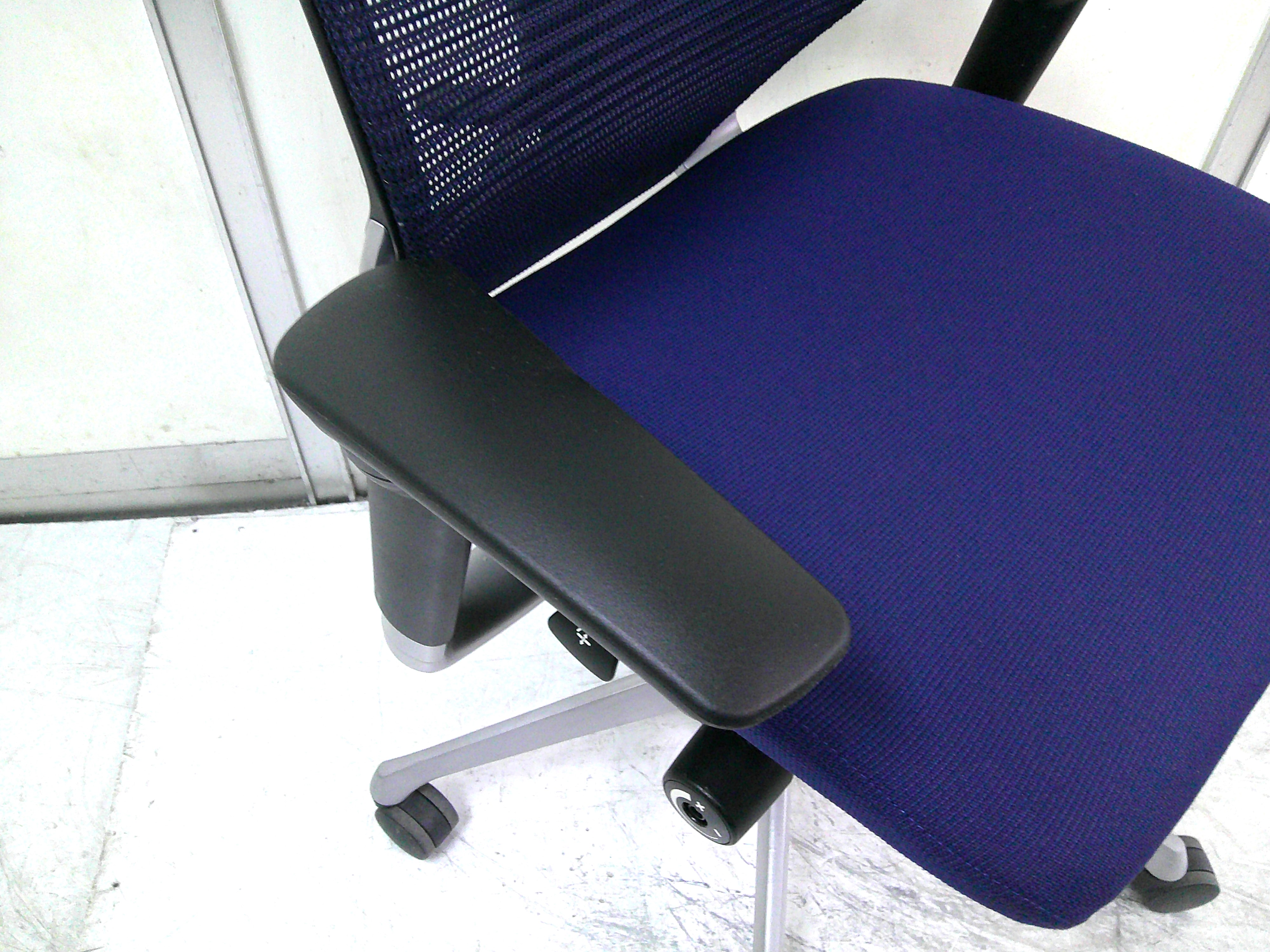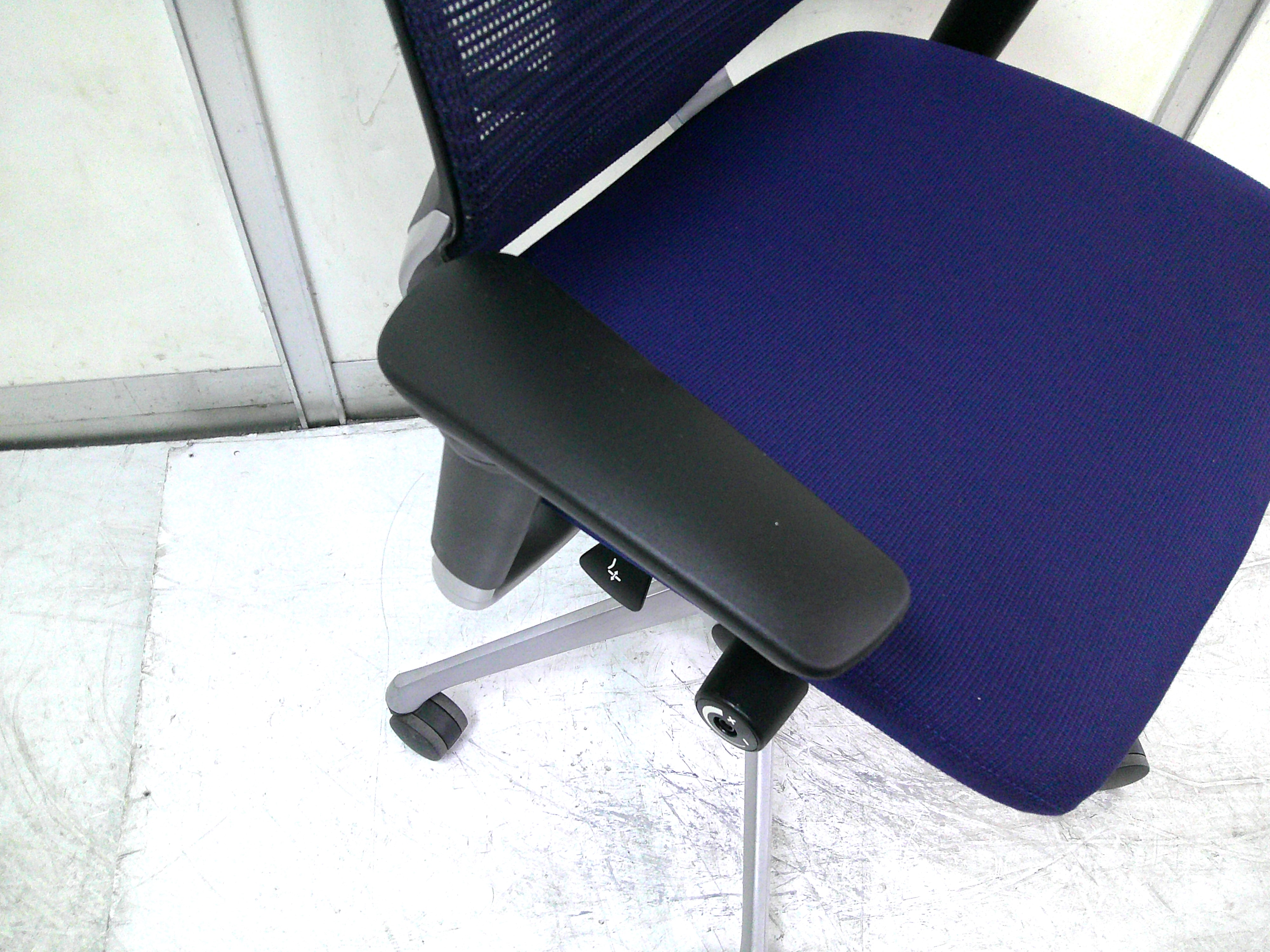 総幅:630 総奥行:560~610 H953~1053 SH430~520 肘高 H563~763 フレーム/シルバー ボディ/ブラック 背:メッシュ ダークブルー / 座:クッション ダークブルー |