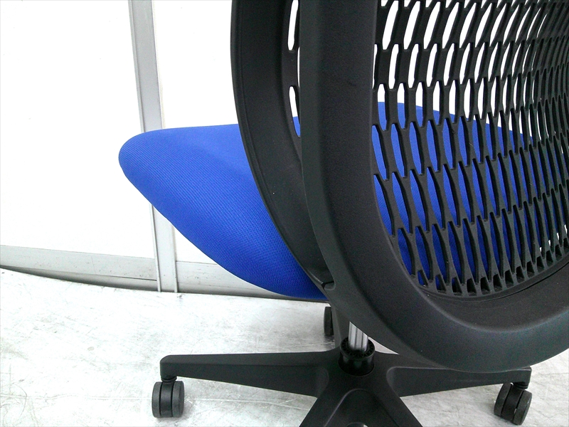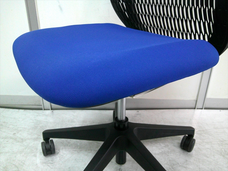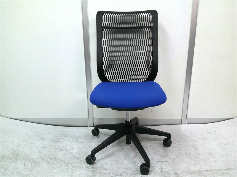 W500×D605×SH415~515×H965~1065 脚外径:約Φ670 背:樹脂(ブラック)・座:布張り(ブルー) |