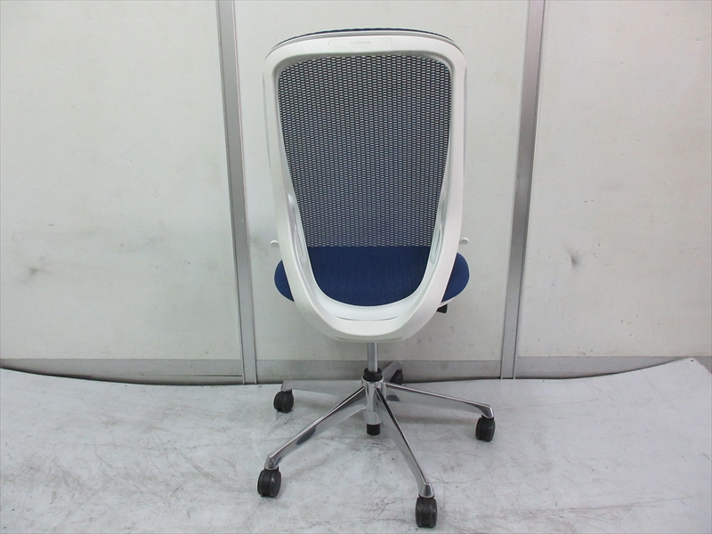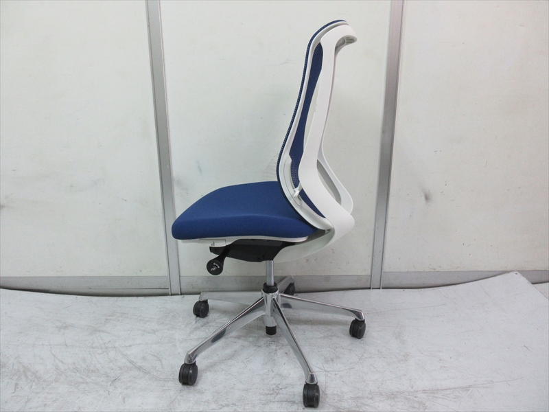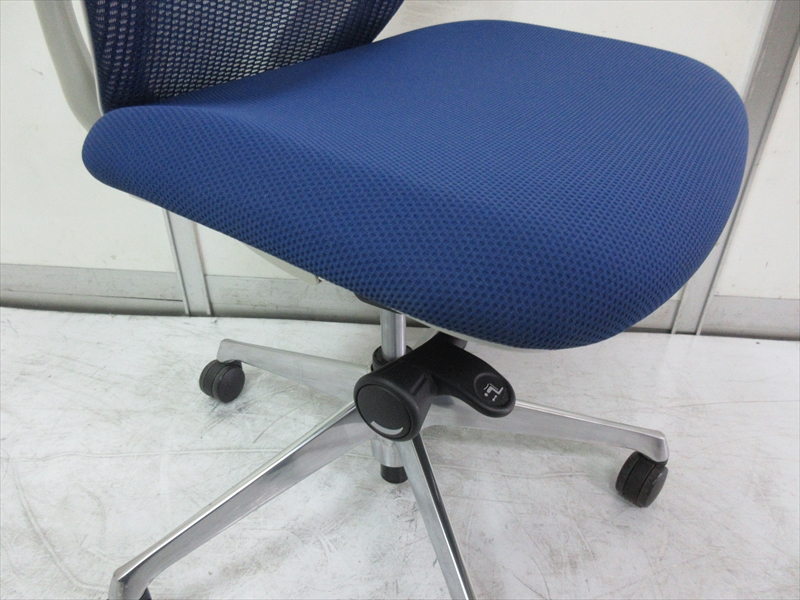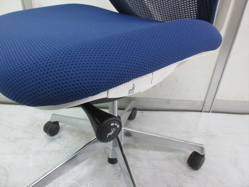 総幅:515 総奥行:560~610 H965~1065 SH420~520 ボディ/ホワイト 背:メッシュ ミディアムブルー / 座:クッション ミディアムブルー 脚:アルミ |