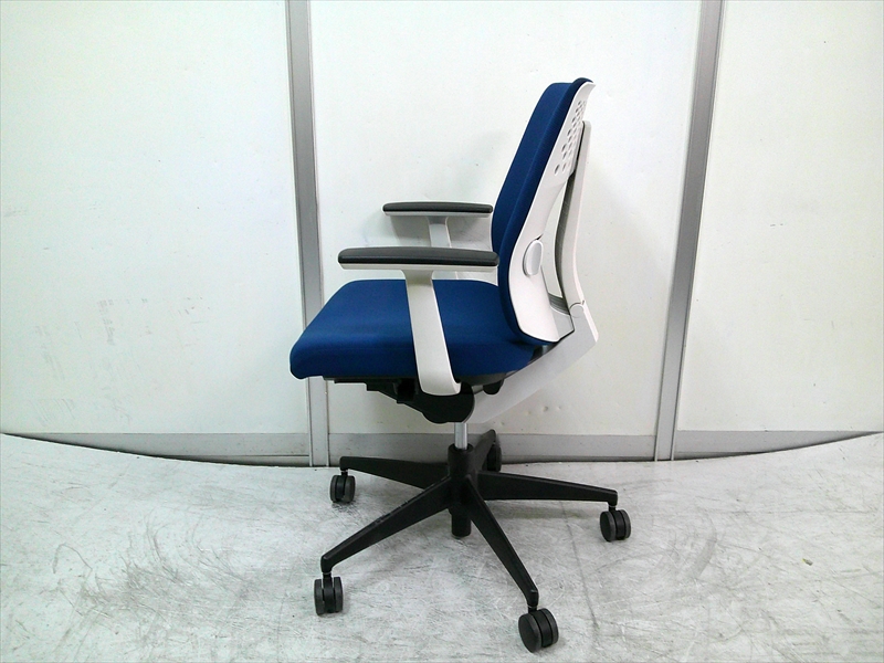 W630×D675~745×SH420~510×H860~950 肘高さ:H610~700 脚外径:約Φ650 背・座:布張り(ブルシアンブルー) シェルカラー:ホワイト 脚:樹脂脚 |