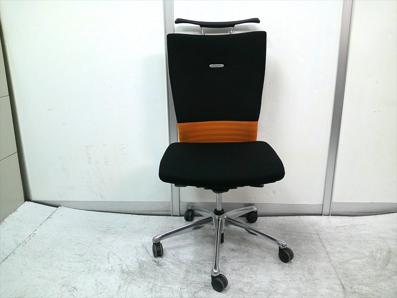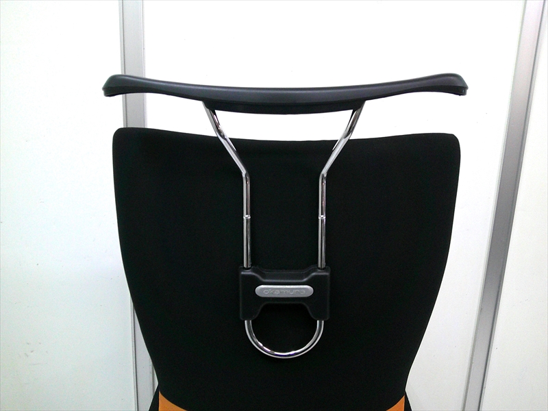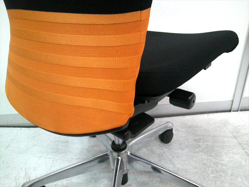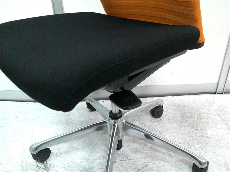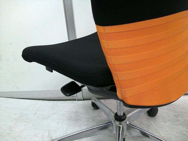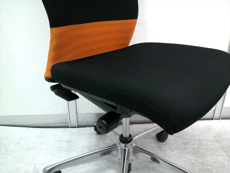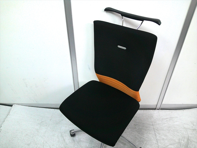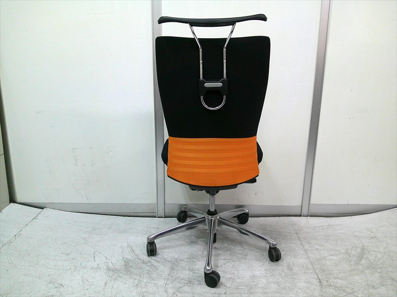 W500×D545~590×SH420~512×H965~1057 脚外径:約Φ682 シームレスタイプ ハンガー付 背:布張り(ブラック+オレンジ) 座:クッション(ブラック) |