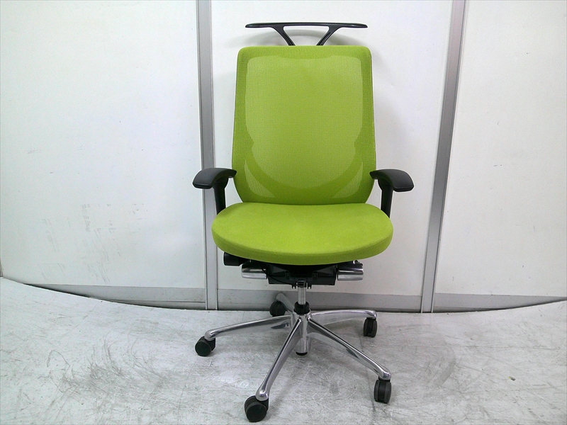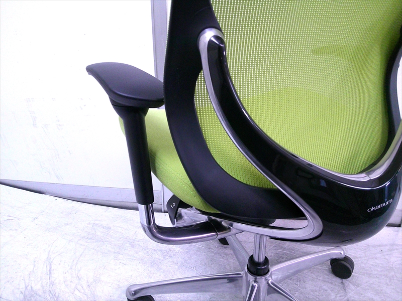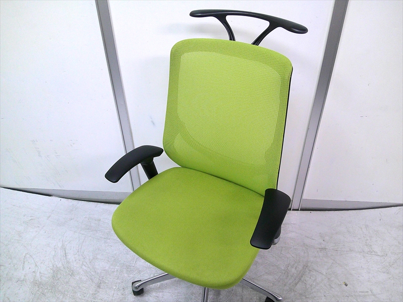 総幅:630 総奥行:566~616 H1038~1138 SH423~523 肘高H600~700 フレーム/ブラック 背:メッシュ グリーン / 座:クッション グリーン |