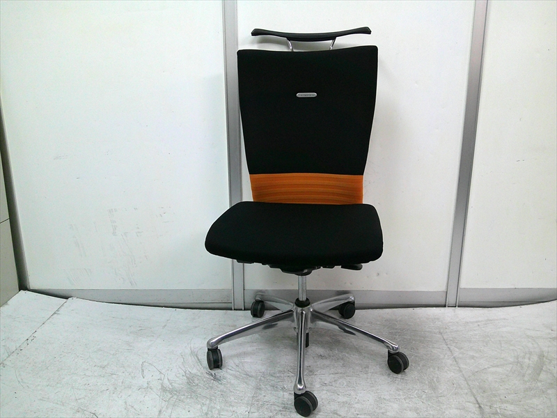 オカムラ コンテッサセコンダ 大型固定ヘッドレスト ランバーサポート付き 座:クッション ブラック ポリッシュフレーム NO2