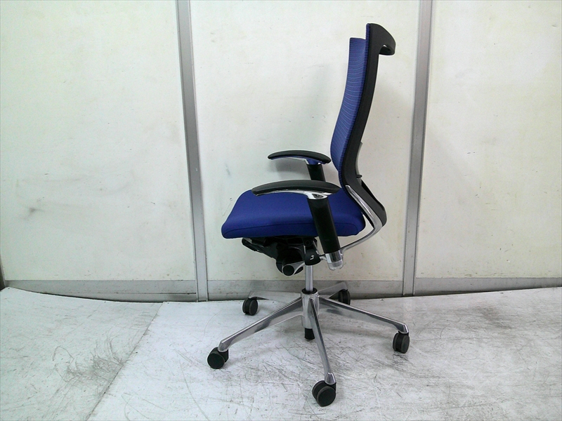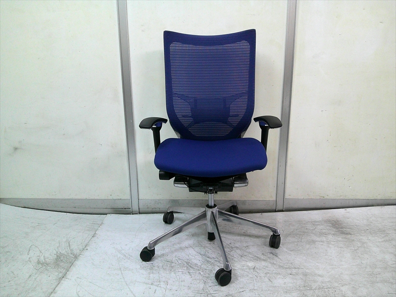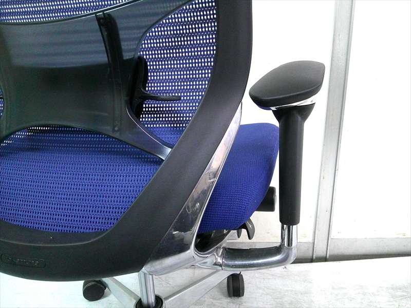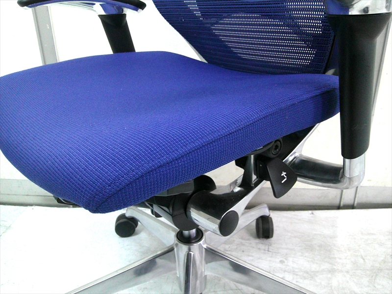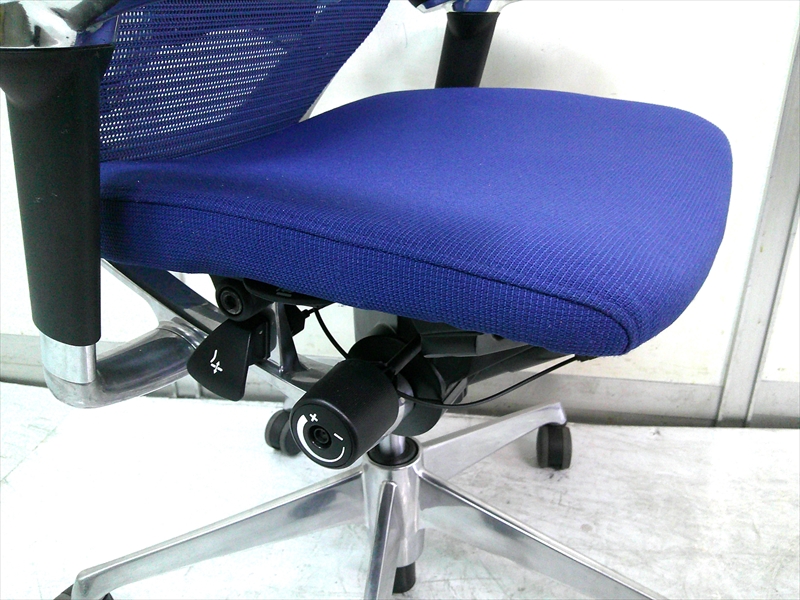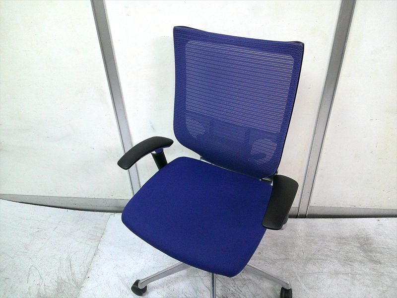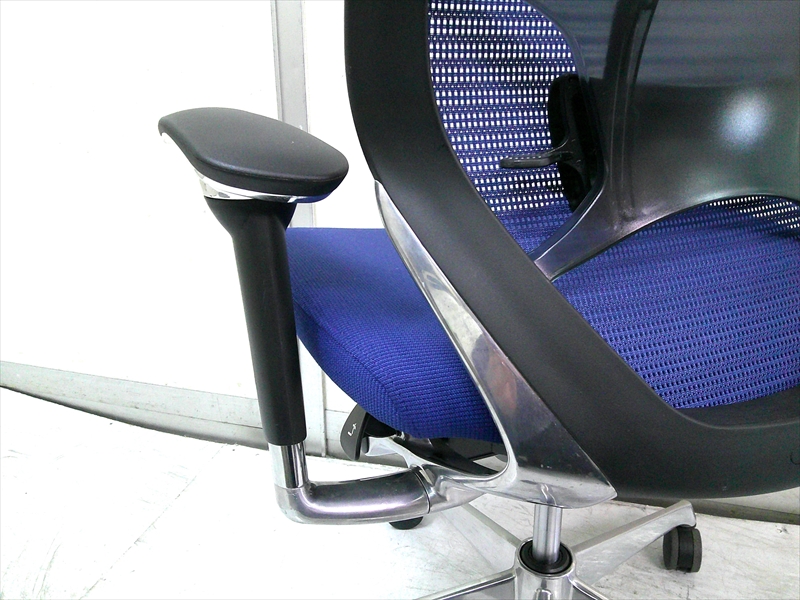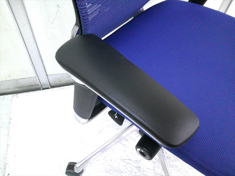 総幅:630 総奥行:560~610 H953~1053 SH430~520 肘高 H563~763 フレーム/ポリッシュ ボディ/ブラック 背:メッシュ ミディアムブルー / 座:クッション ミディアムブルー |