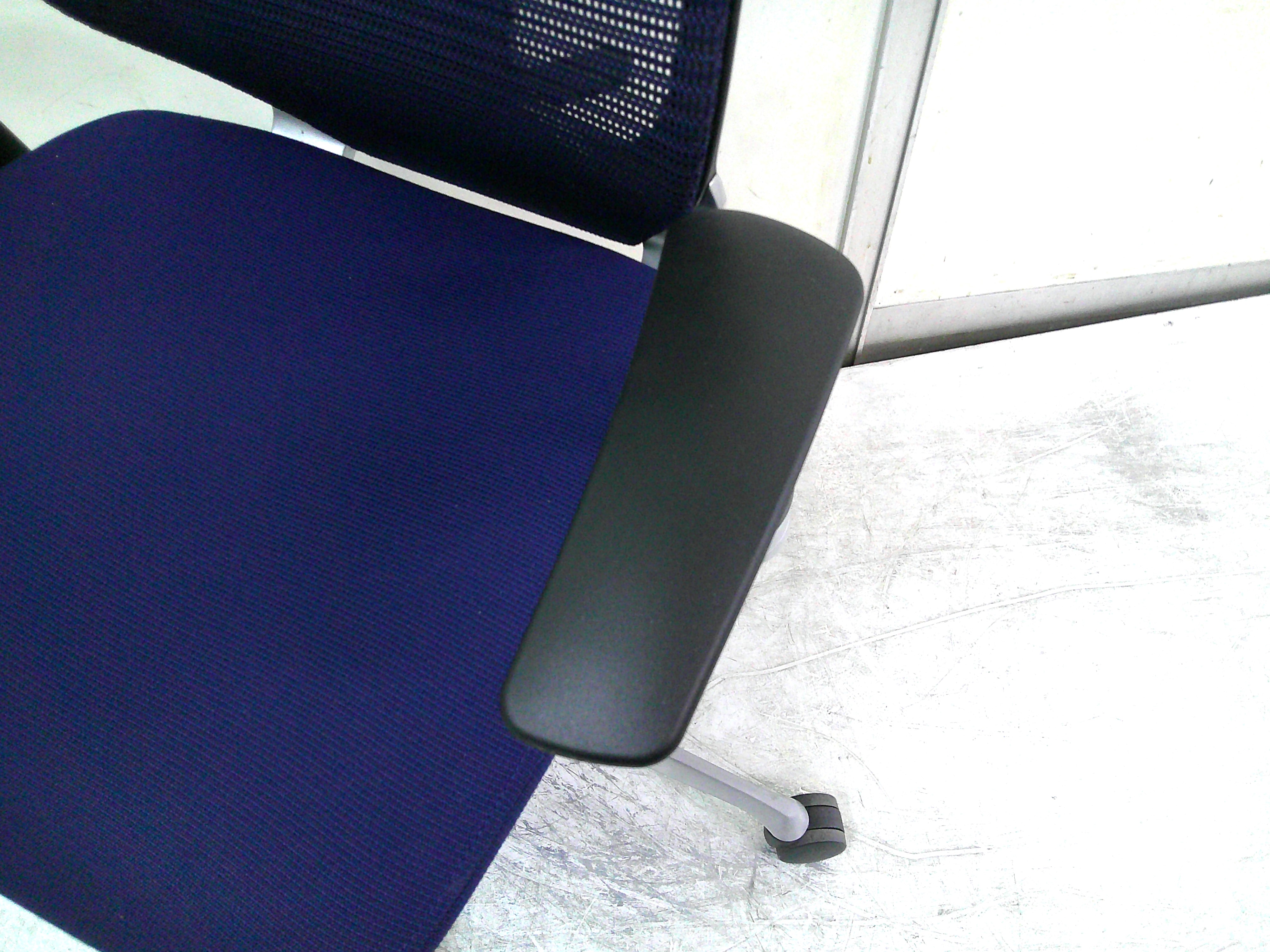 総幅:630 総奥行:560~610 H953~1053 SH430~520 肘高 H563~763 フレーム/シルバー ボディ/ブラック 背:メッシュ ダークブルー / 座:クッション ダークブルー |