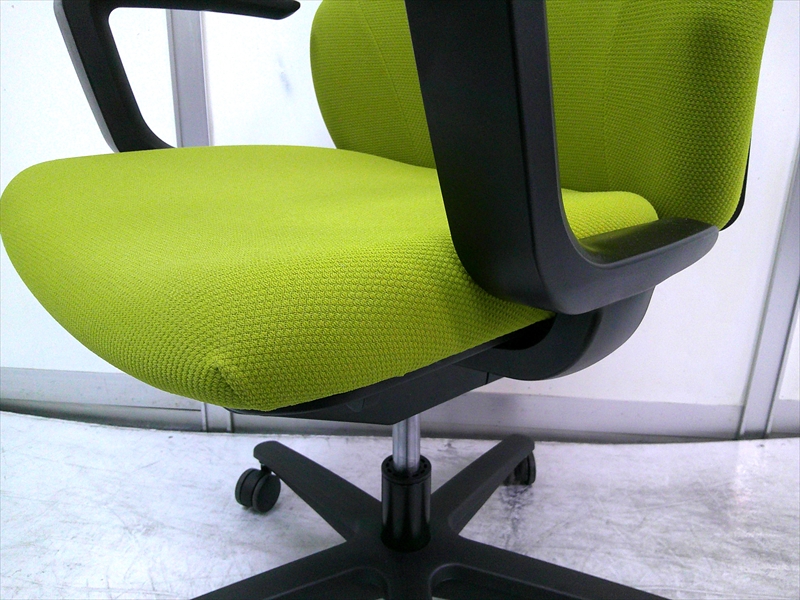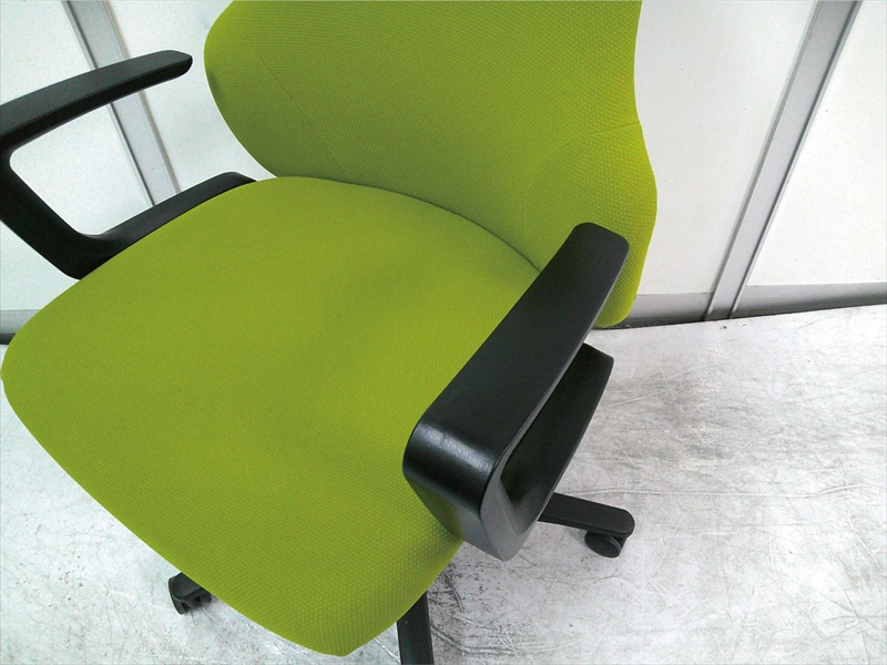 W580×D585~750×SH420~510×H845~935 脚外径:約Φ625 背・座:布張り(ライトオリーブ) シェルカラー:ブラック 脚:樹脂脚 |