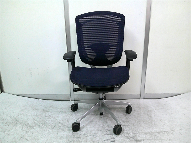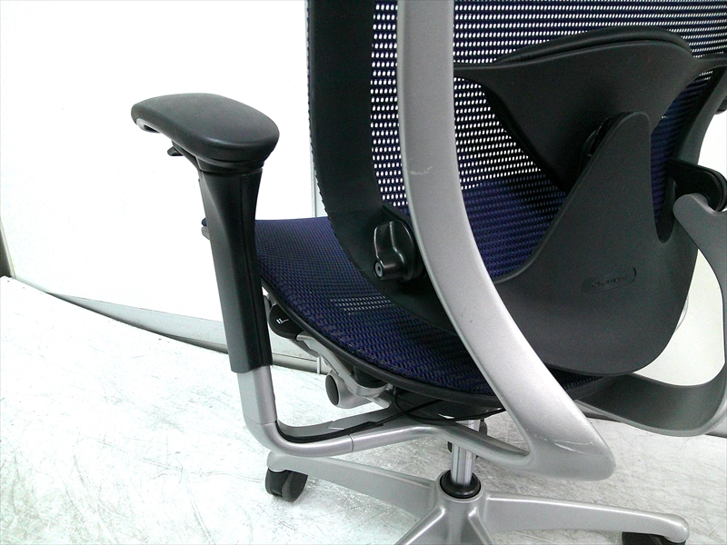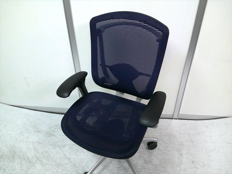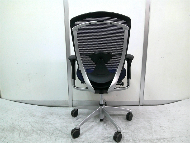 総幅:620~710 総奥行:615~650 H970~1070 SH420~520 肘高 H600~800 フレーム/シルバー ボディ/ブラック 背:メッシュ ダークブルー / 座:メッシュ ダークブルー ウレタンキャスター |