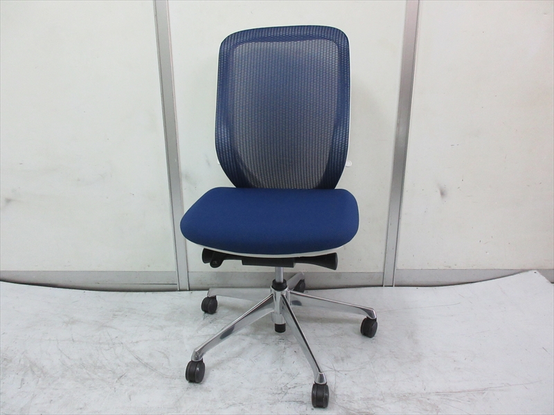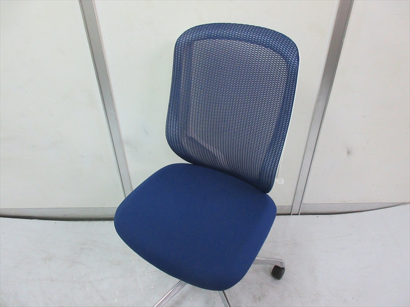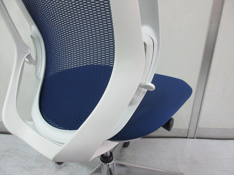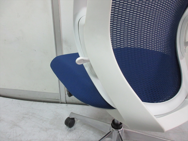 総幅:515 総奥行:560~610 H965~1065 SH420~520 ボディ/ホワイト 背:メッシュ ミディアムブルー / 座:クッション ミディアムブルー 脚:アルミ |
