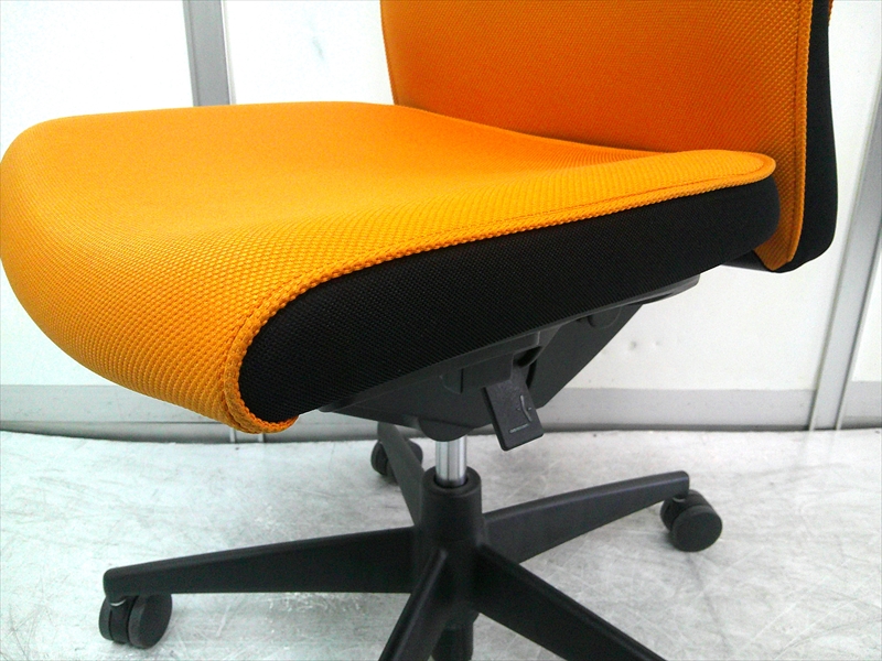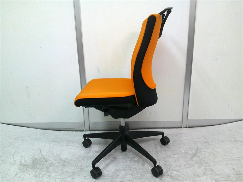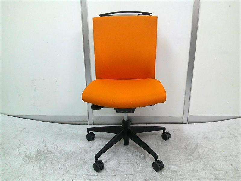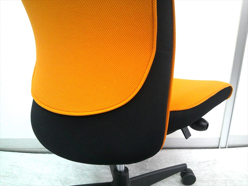 W600×D585~775×SH410~510×H910~1000 脚外径:約Φ650 背・座:布張り(マンダリンオレンジ) 脚:樹脂脚 |