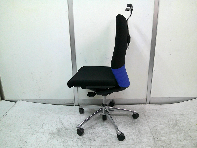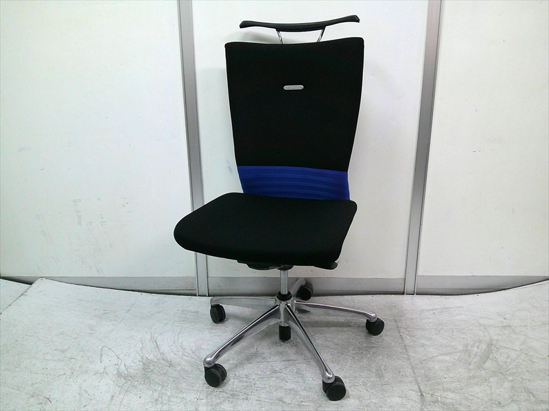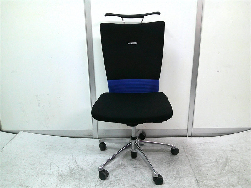 W500×D545~590×SH420~512×H965~1057 脚外径:約Φ682 シームレスタイプ ハンガー付 背:布張り(ブラック+ブルー) 座:クッション(ブラック) |