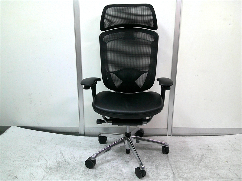 総幅:650~702 総奥行:585~635 H1170~1270 SH420~520 肘高 H590~790 フレーム/ポリッシュ ボディ/ブラック 背:メッシュ ブラック・座:革張り ブラック |